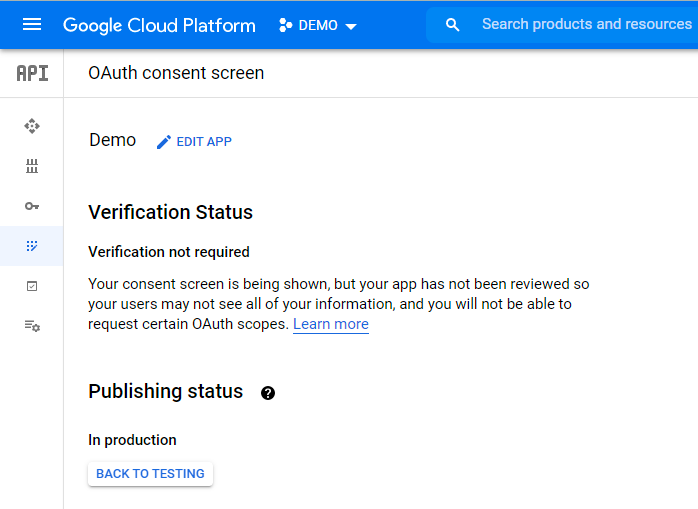 Teste na tela de consentimento OAuth