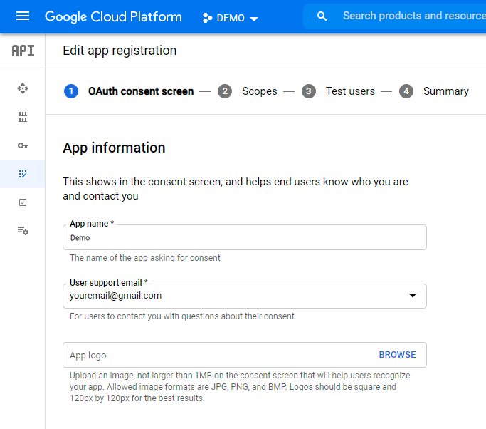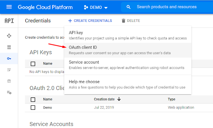 Você precisará criar uma Aplicação Google Cloud para obter um Token de Acesso e um Segredo, que serão usados pelo nosso módulo.