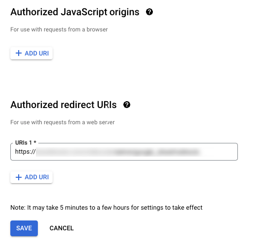 Em 'URIs de redirecionamento autorizados', você precisa adicionar a seguinte URL: